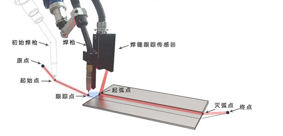 机器人焊缝跟踪系统无需示教编程,寻位确定工件及焊缝的位置,修正真实焊缝的焊接起始位置,在焊接过程中启动实时跟踪,通过实时的控制机器人不断修正机器人的焊接轨迹,达到准确的自动焊接。